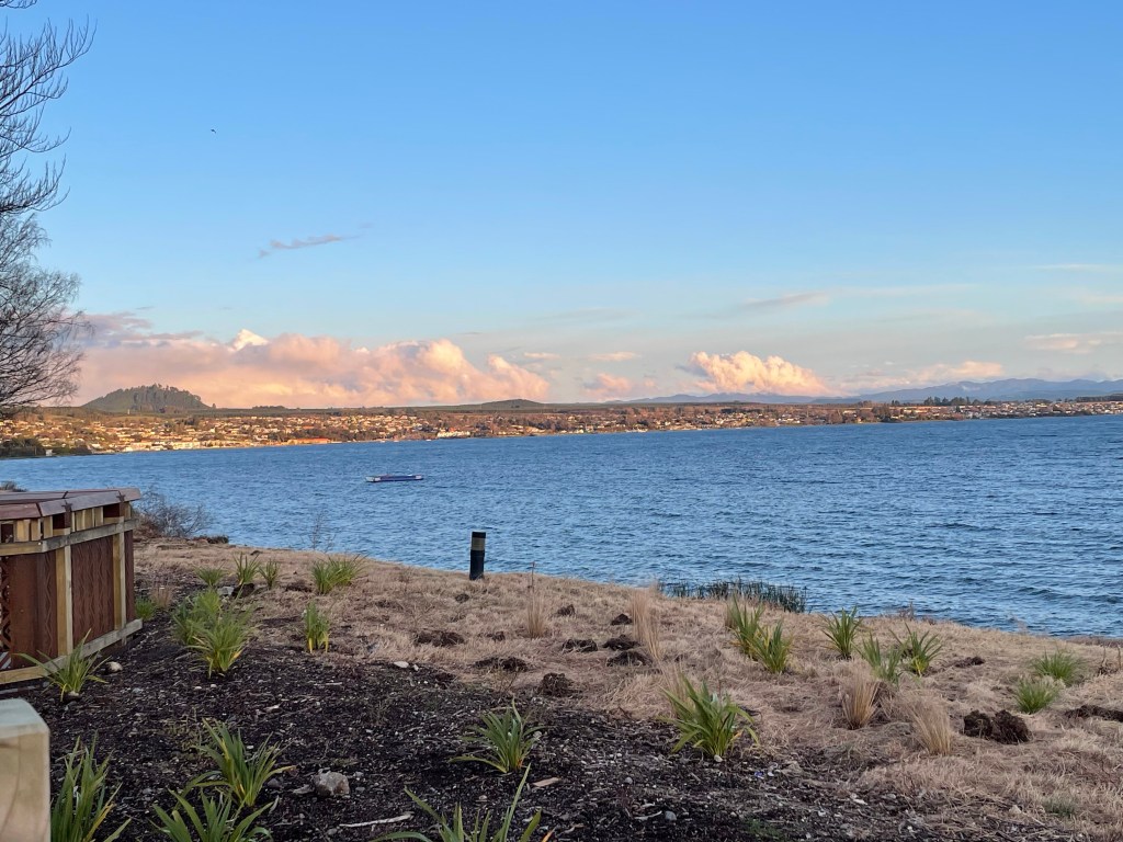 Der See hat halt echt was Beruhigendes und die Landschaft ist echt mega schön. Keine Ahnung. Kann man nicht beschreiben. Auckland war schon Overload als Start, Rotorua dann komplett verregnet und landschaftlich. Naja, eher so Semi. (Vor allem auf den Schwefelgeruch hätte ich verzichten können.) Taupo hingegen ist total gediegen. Ich mein Heute war auch gutes Wetter und echt warm.