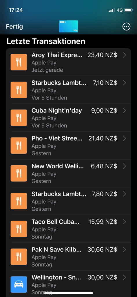 Ich zahle ja mittlerweile fast alles mit Smartphone und nach dem Verlauf möchte man meinen ich tue ausnahmslos essen.