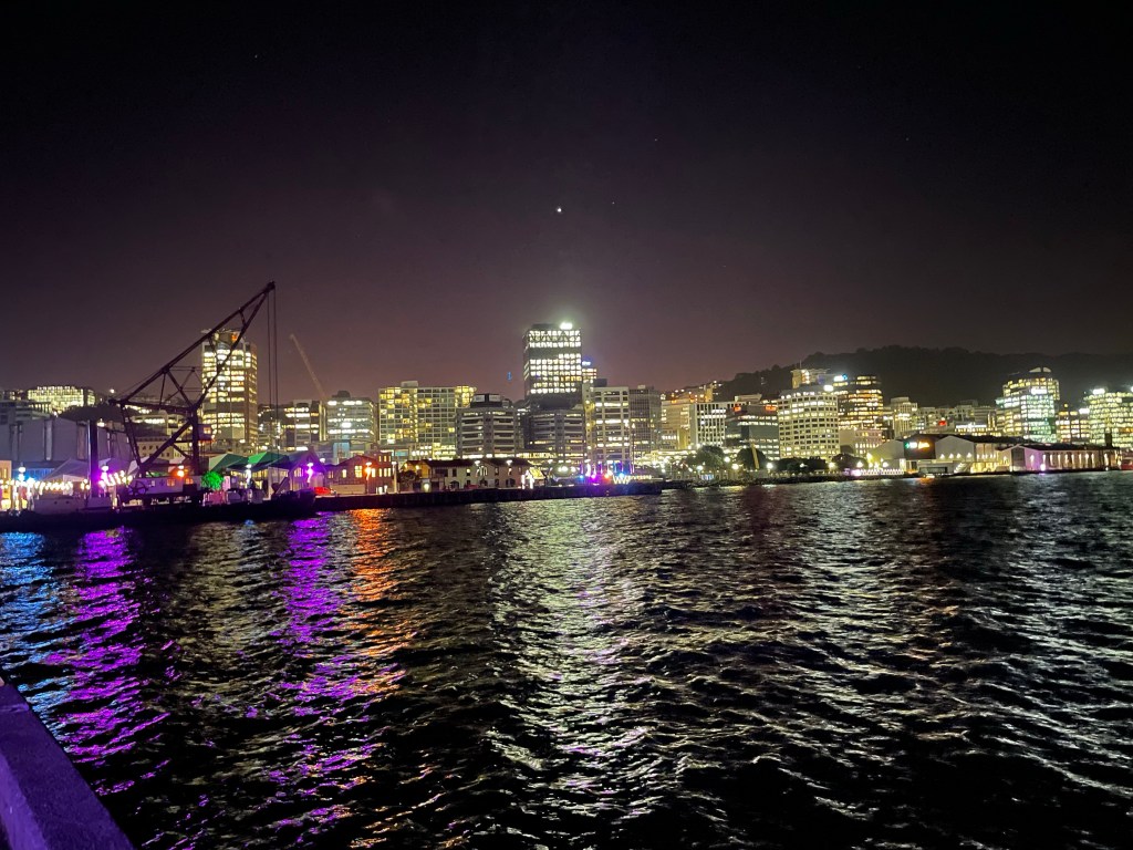 Im Schnitt esse ich tatsächlich extrem wenig. Frühstücken tue ich eh nicht und Mittagessen schiebe ich mir nur eine Kleinigkeit rein. Esse effektiv 1mal am Tag anständig. Wenn man Taco Bell und Co. als Anständig ansehen kann. Ich muss mal schauen, dass ich das besser in den Griff bekomme. Nach dem Essen wollte ich eigentlich wieder ins Hostel, habe mich dann aber doch dazu entschieden nochmal an den Hafen zu gehen. Habe dann überlegt, ob ich in Auckland auch mal Abends am Hafen war. Gerade fällts mir wieder ein. Ich war da, aber der war nicht so Überzeugend. Der in Wellington ist irgendwie sehr friedlich. Hat mich an den Abend in Kuching auf Borneo erinnert. War da sofort wieder emotional. So viel zum Thema Lebensgefühl und so. Reisen gibt einem einfach so extrem viel!