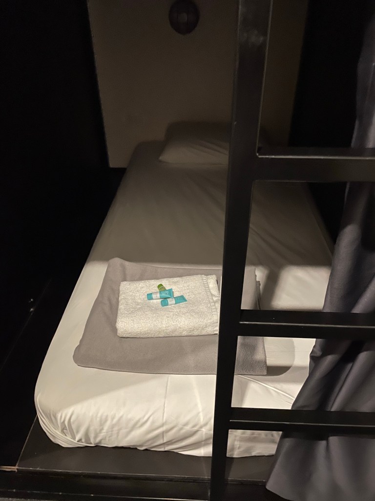 Zum Hostel ging es dank Flughafenzubringer innerhalb von 15 Minuten voll gut. Da ich mich bestens Informiert hatte, wusste ich , dass ich nun die nächste Hop On/Off- Karte holen muss. Öfter mal was Neues. Das ist dann Nummer 4. Die von Auckland ist schon auf dem Heimweg, damit Theo und Carina sie bekommen. Wellington wandert in die Tonne und die Australischen hebe ich auf bis Ende der WM. Je nachdem wo ich bin, brauche ich die evtl. nochmal. Das Kartensystem ist halt voll sinnvoll. Sollte da eine Petition in Deutschland starten, dass die das Flächendeckend machen. Okay, so viel zu meinen tollen Karten. Da ich Eine hatte kam ich halt direkt in die Bahn und musste nicht wie alle Anderen kurz vor dem Bahnsteig erst eine Kaufen. Taktik siegt! Das Hostel ist relativ nah am Bahnhof, allerdings habe ich Nachts natürlich länger gebraucht, weil Google Maps auch hier nicht richtig funktioniert und ich noch keine Orientierungspunkte hatte. Das Hostel an sich ist ziemlich gut. Habe extra mal ein Foto vom Bett gemacht, damit ihr seht, wie ein Luxeriöseres Bett aussieht.