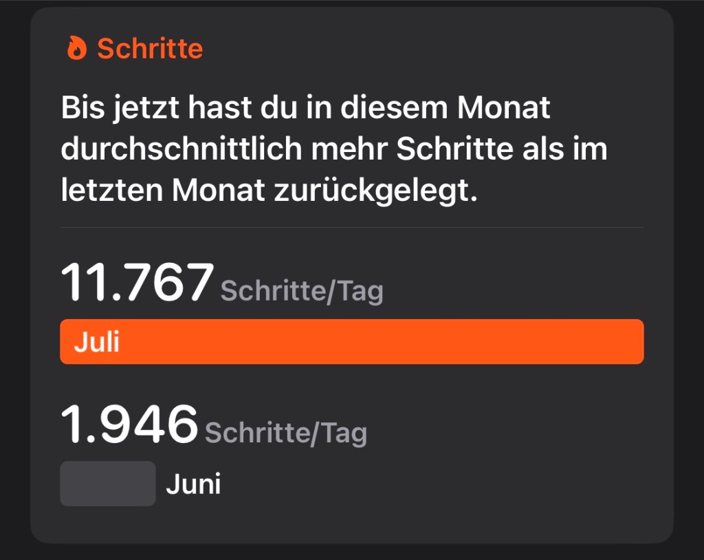 War ganz nett, aber zu viele Menschen und mein Standartspruch ist ja Bekanntlich: „Ich mag keine Menschen.“ Und bevor hier jemand entrüstet ist. Meine Menschen wissen, wie ich das meine! Hab von dort dann auch meinen Dad angerufen. Gratulieren und so. War natürlich Bitter, dass bei mir Warm und Sonne war und bei euch Regnerisch. Hoffe es ist zur Geburtstagsfeier zumindest Trocken geblieben. Also Sydney meint es echt gut mit mir. 20 Grad, Sonne und selten bewölkt. Habe mich daran aber langsam gewöhnt. Bin heute Morgen…. Okay… Morgen ist relativ. Es war schon halb 11… Auf jeden Fall bin ich Gedankenverloren einfach in Trainingshose und T-Shirt zum Bäcker. Ohne daran zu denken das „Morgens“ ja kalt sein könnte. Tatsächlich hatte es so Südfrankreich Flair. Wenn man um 8 Uhr los geht und sein Baguette und Schokocroissant holt. In kurzer Hose, aber noch einem dünnen Pullover weil es leicht frisch ist. Dann kommt man zurück, deckt draussen den Tisch und nach und nach kommt die Sonne raus und es wird langsam wärmer. Grade so wenn es noch leicht frisch ist, aber man weiß es wird ein super Tag…. Mega! Ihr solltet grade das Kopfkino in meinem Kopf sehen. Kennt ihr das wenn ihr in einer Situation seid und sofort an einen schönen Moment denkt, der quasi das selbe Gefühl widerspiegelt? So in etwa war das heute früh. Statt Ferienhäuschen in Südfrankreich halt in der Millionenstadt Sydney. Also es war leicht fresh, aber ich habs gefeiert. Also so viel zum Thema Wetter. Bin jetzt voll abgeschweift von Gestern zu Heute. Okay. Zurück in die Vergangenheit. LOL. Ich bin dann mit meinen Eltern am Telefon kurz hin und her gelaufen, damit sie sehen, was hier so abgeht. Ich glaube es hat ihnen gut gefallen. Machte zumindest den Eindruck! Danach habe ich den Weg Richtung Heimat angetreten. Also man muss dazu sagen, dass ich Morgens glaub 4h geschrieben habe und daher super spät dran war. Bin erst um 14 Uhr raus gegangen. Irgendwann war so „Laura, geh jetzt raus um 17:30 ist stockdunkel!“. Habe mir gestern Abend übrigens mal ausgewertet, was ich so gelaufen bin. 16000 Schritte und knapp 10km. Mein Schnitt ist also nicht ganz schlecht. Traurig war allerdings, dass ich dann geschaut habe was meine Apple „Health“-App ohne mein Wissen mitgetrackt hatte.