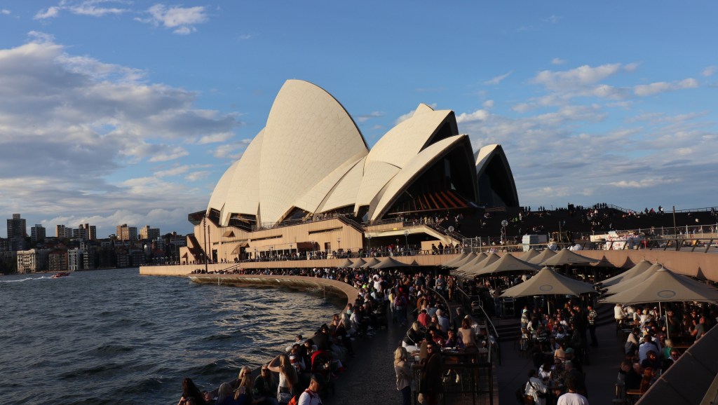 Ein weiterer Tag ist durch oder wie ich sagen würde: „Ein Tag weniger Freiheit.“ Der beste Indikator, dass es dem Ende zu geht sind meine Medikamente. Sie werden Weniger und endlich ist mehr Platz in meiner Tasche, allerdings heißt das auch, dass der Flieger nach Deutschland bald geht. Aber zum Glück sind wir so weit noch lange nicht. Nächsten Dienstag sind es dann genau 4 Wochen. Wie die Zeit rast. Gefühlt habe ich außer einer handvoll Touren nichts gemacht. Also einer Handvoll ist schon eigentlich übertrieben. Ich versuche mich gerade daran zu erinnern was ich eigentlich über Get Your Guide gebucht habe. Führung in Rotorua, Bootsfahrt auf dem Lake Taupo und der Tagestrip nach Hobbiton und die Glowworm Caves. Wenn man jetzt noch Bedenkt, dass davon nur eines eine Tagestour war, erscheint das leicht wenig. Hier habe ich für die kommenden Tage noch Walbeobachtung, Opernhaus und Zoo gebucht. Alles was auch ohne Get Your Guides geklappt hätte. Also war es tatsächlich nur die Tour in Auckland, die ich komplett geführt gemacht habe. Verrückt. In Auckland dachte ich noch ich werde arm Sterben, weil die Touren so teuer sind. Im Endeffekt regel ich jetzt doch alles irgendwie selbst. Ich habe mir glaube ich mehr Freiraum eingeräumt als vorher gedacht. Ich weiß echt nicht, ob ich Heim komme und mir denke „Hätteste mal mehr gemacht“ oder „Es war genau das richtige Tempo um einfach mal zur Ruhe zu kommen“. Ich bin gespannt, wie das Fazit am Ende ist. Ich Erinnere mich da gut an Asien, als wir am Ende einfach müde vom Besichtigen/Reisen waren und eigentlich nur noch gechillt haben. Und am Ende frägt man sich auch, ob man Zeit verschenkt hat. Im Endeffekt hatte man das nicht! Es war genau das, was wir in dem Moment gebraucht hatten. Ich denke so wird das hier auch werden. Wer am Ende also Fragen wird „Warst du dort? Hast du das Besichtigt?“ wird womöglich enttäuscht sein. Aber ich bin aktuell fein damit. Auch weil ich halt zufällig Ecken finde, wo keine Touren durch gehen. Gestern mal spontan in den Kunstmarkt reingestolpert. „The Rocks“ heißt die Ecke und ist echt schön. Alles komplett entschleunigt dort. Werde da später evtl. nochmal hinmarschieren. Da die Gestern um 17 Uhr Siesta gemacht haben bin ich da noch voll in Time. Gestern war ich gut 4h zu Fuß unterwegs. Von Chinatown zum Opernhaus und zurück zur Waterfront vor meiner Haustüre. Zum Abschluss ging’s noch aufs Fanfestival. Unterwegs bin ich noch in den Park beim Barangaroo-Viertel gestolpert. Hatte irgendwie Schlo-Flair, aber halt am Wasser. Und wer mich kennt: Sonnenuntergänge am Wasser sind einfach Meins. Vielleicht sind deswegen auch die Mehrheit der Bilder, die ich Online stelle mit Meer, See oder Hafen. Ich hatte es schon gestern Abend auf Insta geschrieben: Irgendwie kann man in Sydney in jede Richtung laufen und hat immer das Gefühl in der Innenstadt zu sein. Ob nach Norden oder Süden….Plötzlich ist alles voll mit kleinen Läden, Malls und Restaurants. Ich hab jetzt übrigens auch rausgefunden, dass mein Hostel mitten in Chinatown liegt. Nur mal so Nebenbei. Jetzt habe ich das Premium-Essen wenigstens um mich rum. Anna würde das dezent mit mir feiern. Hier steht überall Hot Pot oder Pho dran. Ich glaube es wäre mal wieder Zeit für Vietnam. Andy, wann bekomm ich die nächsten 3 Monate Auszeit??? Bin ja schon so voll froh, dass ich die Zeit bekommen habe und was ich hier alles sehe ist schon Mega. Ich bin Gestern auf jeden Fall mal an den anderen Teil des Hafens gelaufen, nämlich zum Opernhaus. Muss man ja angeblich gesehen haben.