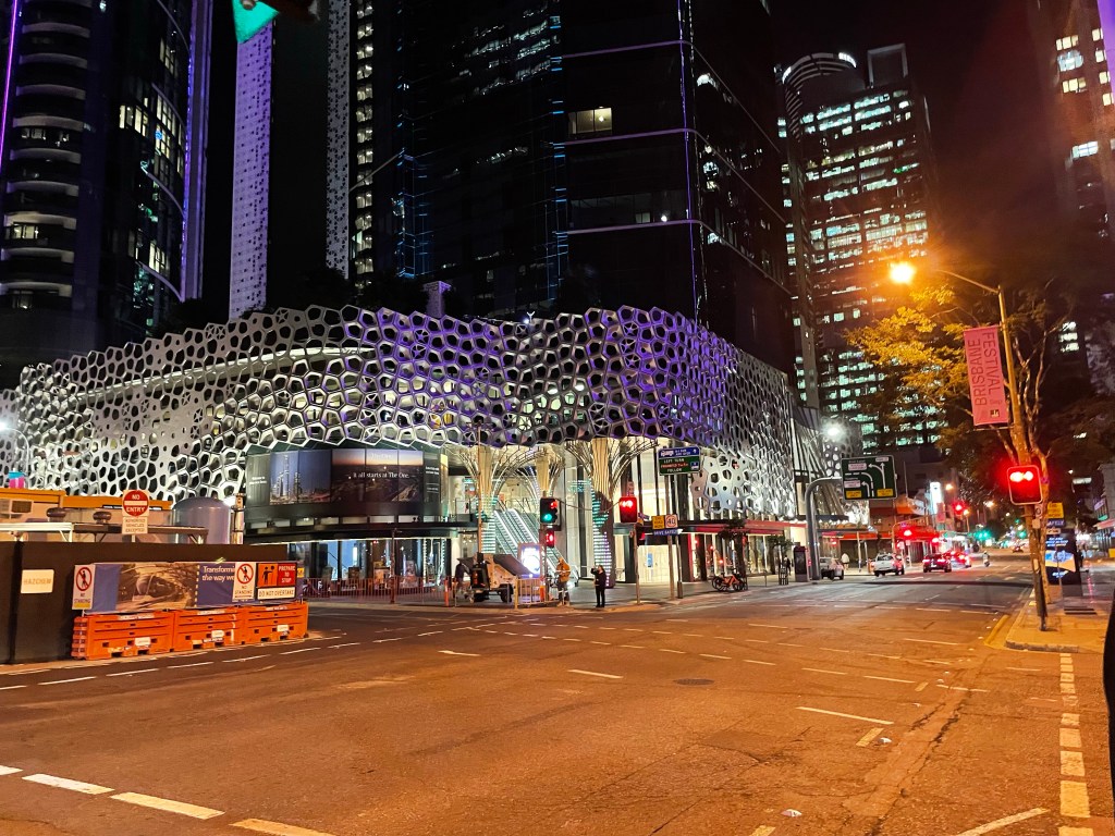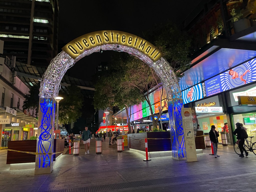 Also eigentlich ganz gemütlich. Als ich vom Waschen zurück war, hab ich das Zeug auch gleich geordnet, damit ich das Nachts nicht tun muss und bin dann auf die Suche nach der Stadtmitte gegangen. Wenn es das war was ich gefunden habe, dann hat Brisbane weniger Stadtleben als Wellington. Also so gefühlt eine Einkaufsszone und das wars. Da ich die letzten Tage auch von Tonnen von Restaurants umgeben war, ist das hier verstörend wenig.