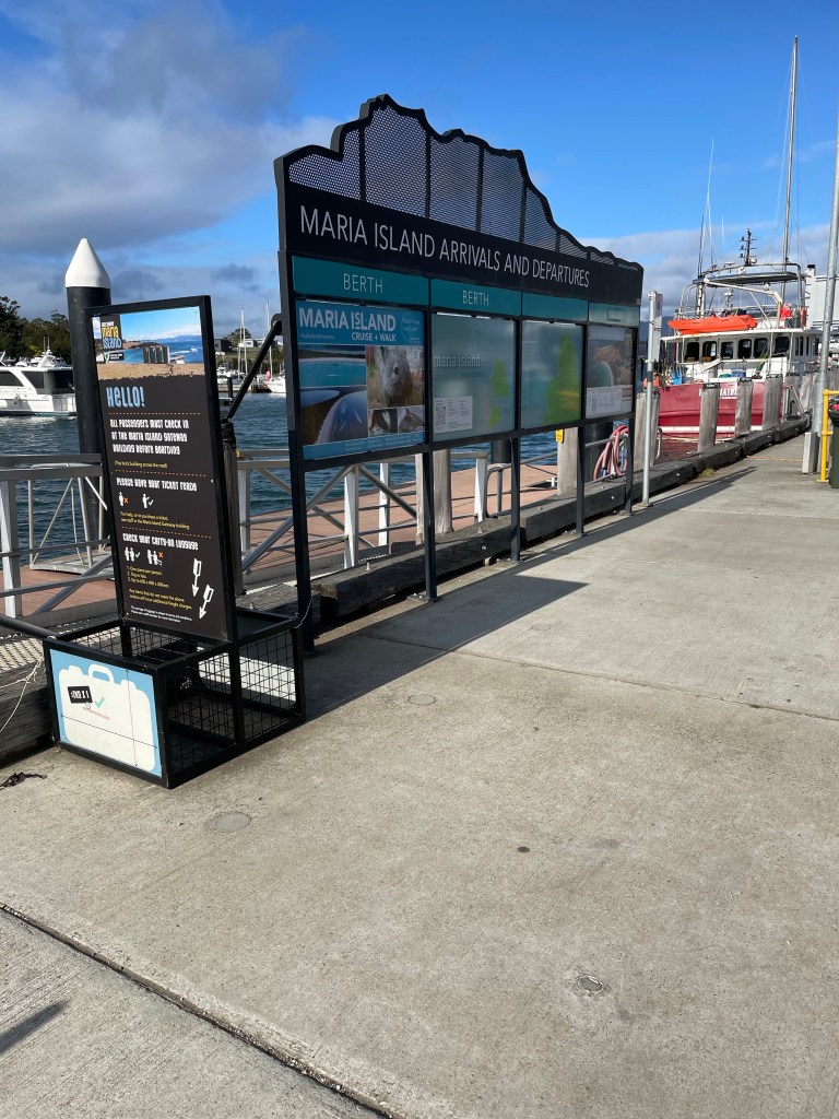 Ich bin dann tatsächlich noch einkaufen gegangen und hab mir zum ersten Mal auf meiner Reise selbst was gekocht. Ich hatte ja noch einen zweiten Tag, an dem ich dann die Reste essen konnte. Insgesamt muss man sagen, waren die Hütten halt nicht isoliert, daher war es gut Kalt. Ich habe ja immer ein schlechtes Gewissen, wenn die Klima so lange läuft, aber da ging es halt echt nicht Anders. Heute Nacht habe ich zusätzlich noch die Heizdecke angemacht. Es hat Nachts extrem Weit abgekühlt und ich merks jetzt noch, dass mein Hals gut kratzig ist und mir mehr Kalt ist als Normal. Am nächsten Tag bin ich dann nach Maria Island. War wie immer super. Die Schreiben auf das Ticket mindestens 45 Minuten früher da sein, wegen dem Einchecken. Wann bin ich aufs Schiff: 5 Minuten vor Abfahrt. Aber immer, wenn man sich nicht dran hält, kommt Karma und die Busse und Schiffe fahren Früher als angegeben. Daher halte ich mich da lieber dran, bevor ich da stehe und nichts weiter geht. Ich habe an dem Tag auch extra eine Fähre später genommen, weil ich ja Urlaub habe und da nicht ständig um 6:00 aufstehen will. 10 Uhr tut es auch.