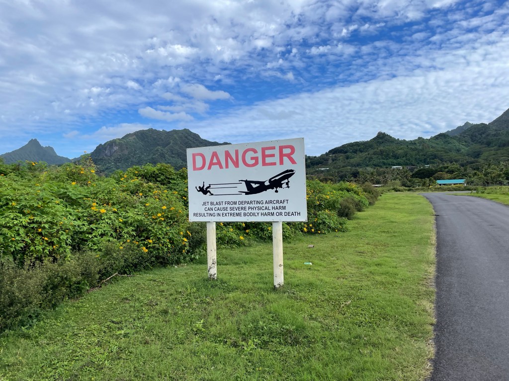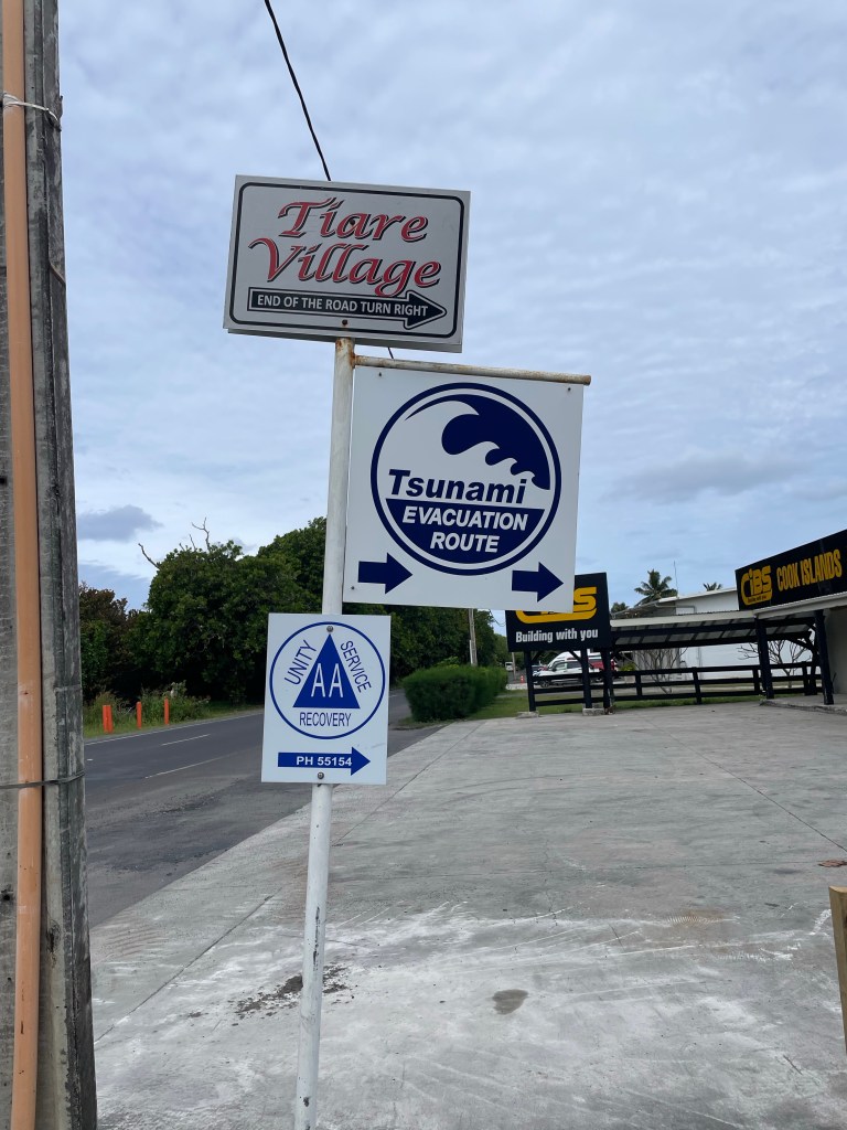 Hat gut geschmeckt, aber etwas Alternativ. Ich habe einen Moment gebraucht, um den Fehler zu finden: In dem Pesto war Koriander. Hatte ich so auch noch nie. Gehöre leider zu den Leuten für die das Seifig schmeckt und daher versuche ich es immer zu umgehen. Hier war es zum Glück nur dezent, von dem her war es machbar. Hab in dem Restaurant auch versucht Zeit zu killen. Von 10:00 Uhr Check out bis 19:45 Uhr Flug ist ne laaaaaaaaange Zeit. Ich hab mich irgendwann dazu entschlossen einfach zum Airport zu gehen um evtl. an nen früheren Flug zu kommen. Als ich gerade mein Gepäck holen wollte, bin ich Leanne über den Weg gelaufen, die sich dazu bereit erklärt hat mich zum Airport zu bringen. Falls ich keinen früheren Flug bekommen würde, würde sie mich einfach wieder mit nehmen, dann könne ich noch am Strand spazieren gehen. Es hatte nämlich zu dem Zeitpunkt aufgehört zu regnen. Also sind wir zum Airport und ich konnte tatsächlich 2 Flieger früher nehmen. Die fliegen hier ja immer hin und her, also geht da so alle 2h immer der nächste Flieger. Sie haben mal wieder vergessen mir das Gepäck zu berechnen, also könnte man sagen der Betrag, hat die Aufzahlung für den früheren Flug ausgeglichen. Bin mittlerweile auf 13kg runter mit meinem Backpack habe ich auf der Waage gesehen. Langsam wird’s. Flug war schnell um und so stand ich bereits um 15:30 Uhr in Rarotonga am Airport. War wie immer „kinda lost“. Das Ding ist halt, dass ich die letzten 8 Tage meiner Reise immer in einem AirBnB bin und da oft keine genaue Adresse dabei steht. Man kann sich den Standpunkt bei Google Maps anzeigen lassen, aber es kann auch sein, dass es nur das Gebiet anzeigt und nicht die Unterkunft an sich. So war es hier nämlich. Das wusste ich zu dem Zeitpunkt aber nicht, also bin ich erstmal zu dem Punkt, den Google mir angezeigt hat. Da Sonntag war sind keine Busse gefahren und 20NZD für ein Taxi wollte ich nicht zahlen, also bin ich die 20 Minuten gelaufen. Dabei bin ich auch an einigen Straßen vorbei mit sehr beunruhigenden Schildern.