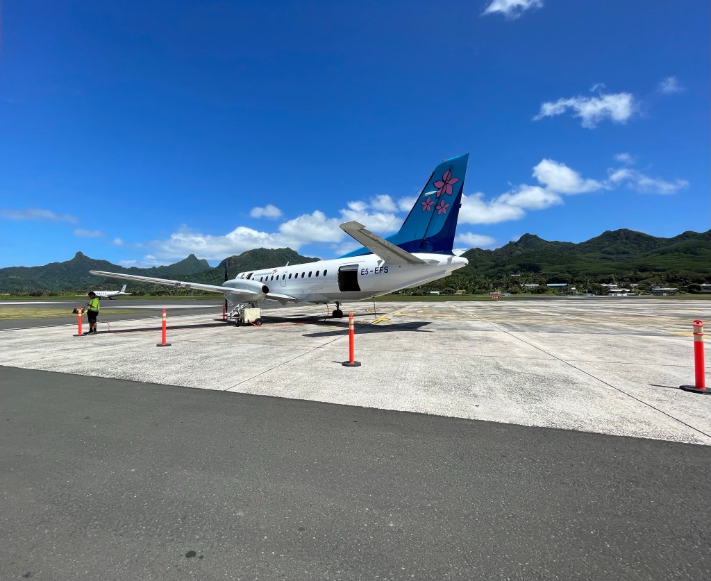 Heute hieß es also „Auf Wiedersehen Cooks, hallo Polynesien“. Ich muss sagen Rarotonga war landschaftlich echt das Kontrastprogramm zu Aitutaki, aber im Endeffekt hat es mir echt gut gefallen. Tat mir auch ein bisschen Leid um mein AirBnB heute, weil die Besitzerin einfach so Herzlich ist. Hat mir ja noch angeboten einen späteren Check-Out zu machen, weil mein Flieger erst um 14 Uhr ging, aber ich wollte ja eh zum Airport laufen und das brauch mit 16kg Gewicht ein bisschen. Musste tatsächlich Pausen machen. Sie hatte mir auch angeboten, mich zumindest an den Hafen mitzunehmen, aber meine Schrittzähler-App hätte sich da nicht gefreut. Also ging’s um 10 Uhr Richtung Airport, wo ich tatsächlich Leanne von Aitutaki wieder getroffen habe. Sie ist nämlich mit ihrem Mann heute nach Auckland. Während ich auf meinen Flug gewartet habe, fiel mir wieder ein das ich ja mit Air Rarotonga fliege und damit wieder mit einer kleinen Maschine oder wie ich sagen würde: Todesflieger.